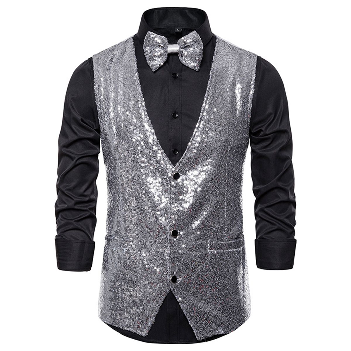 Occasions For: This mens glitter vest is great with any dress pants, dress shirt, suit, tuxedo for a sharp classy look, suitable for wedding, prom, party, disco, dance, stage performance, nightclub, dating, show, hip hop, Halloween, Christmas and so on.