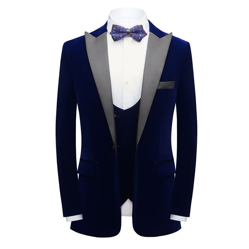 Mens Velvet Peak Lapel Banquet Party Suit Jacket